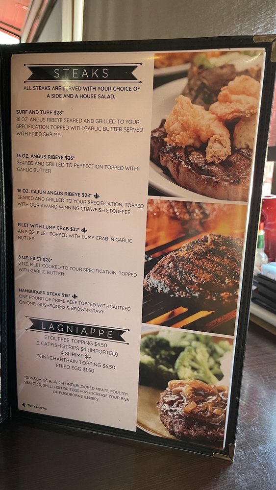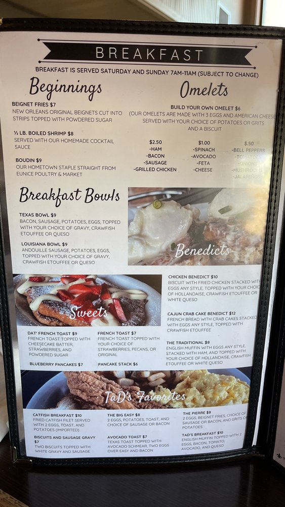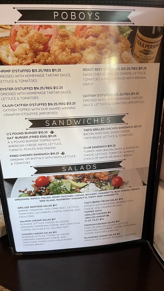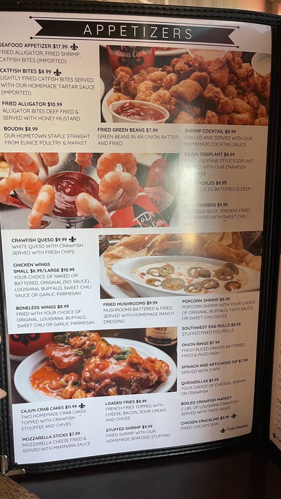 Tad’s Louisiana Cooking Menu
